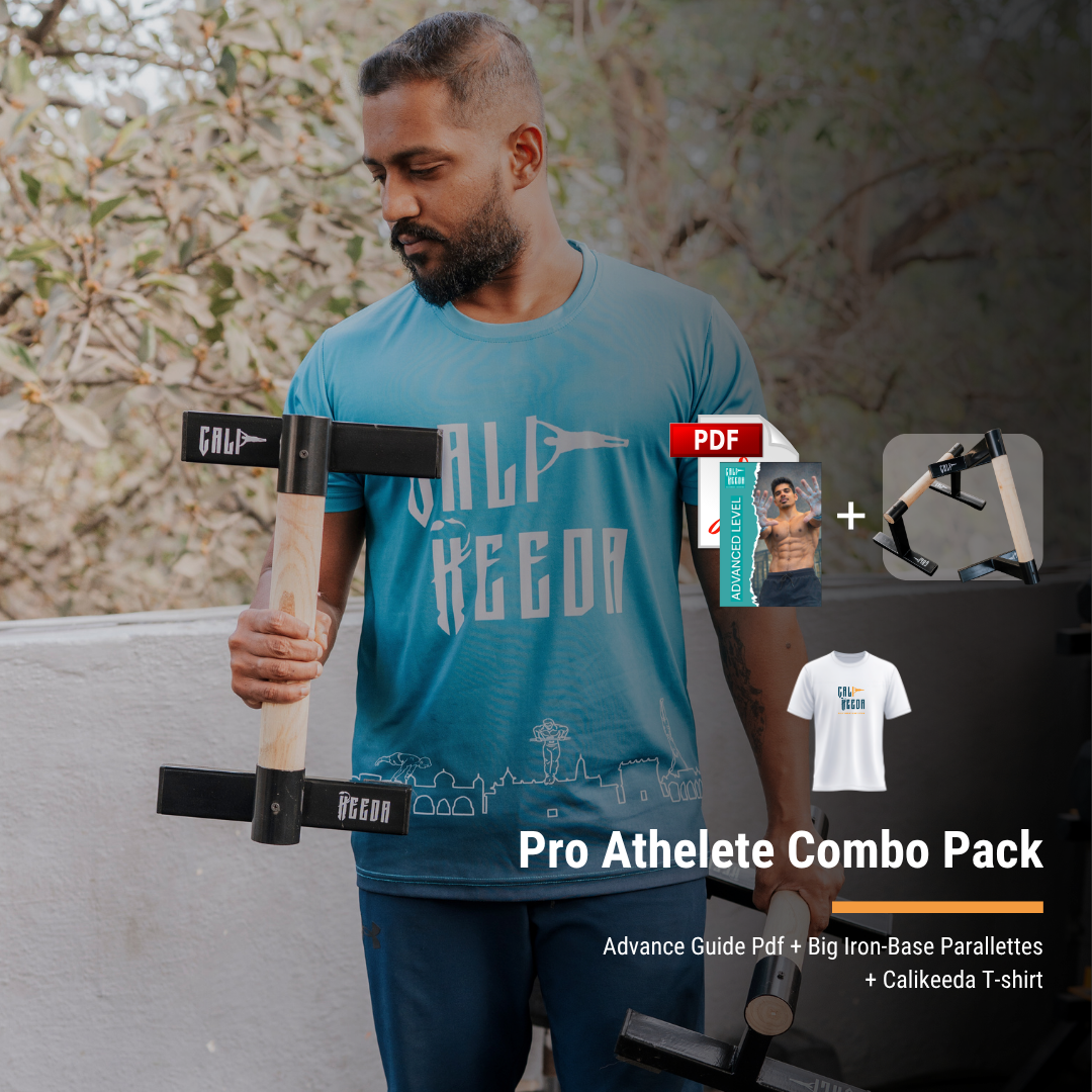 Unlock your full potential with the Advanced Guide + Big Parallettes + Calikeeda Tee Bundle today.